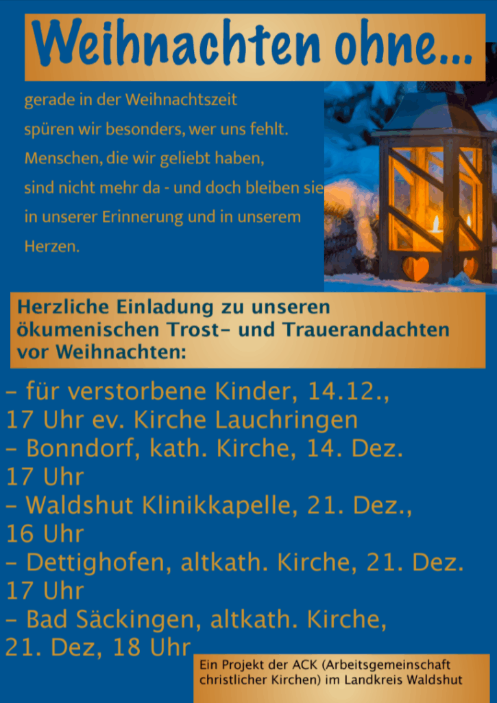 Herzliche Einladung zu unseren ökumenischen Trost- und Trauerandachten vor Weihnachten: